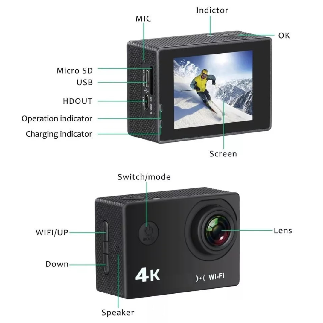 ✅Cámara de Acción deportes Sumergible 4K U HD Wi-Fi. SPORTS CAM.