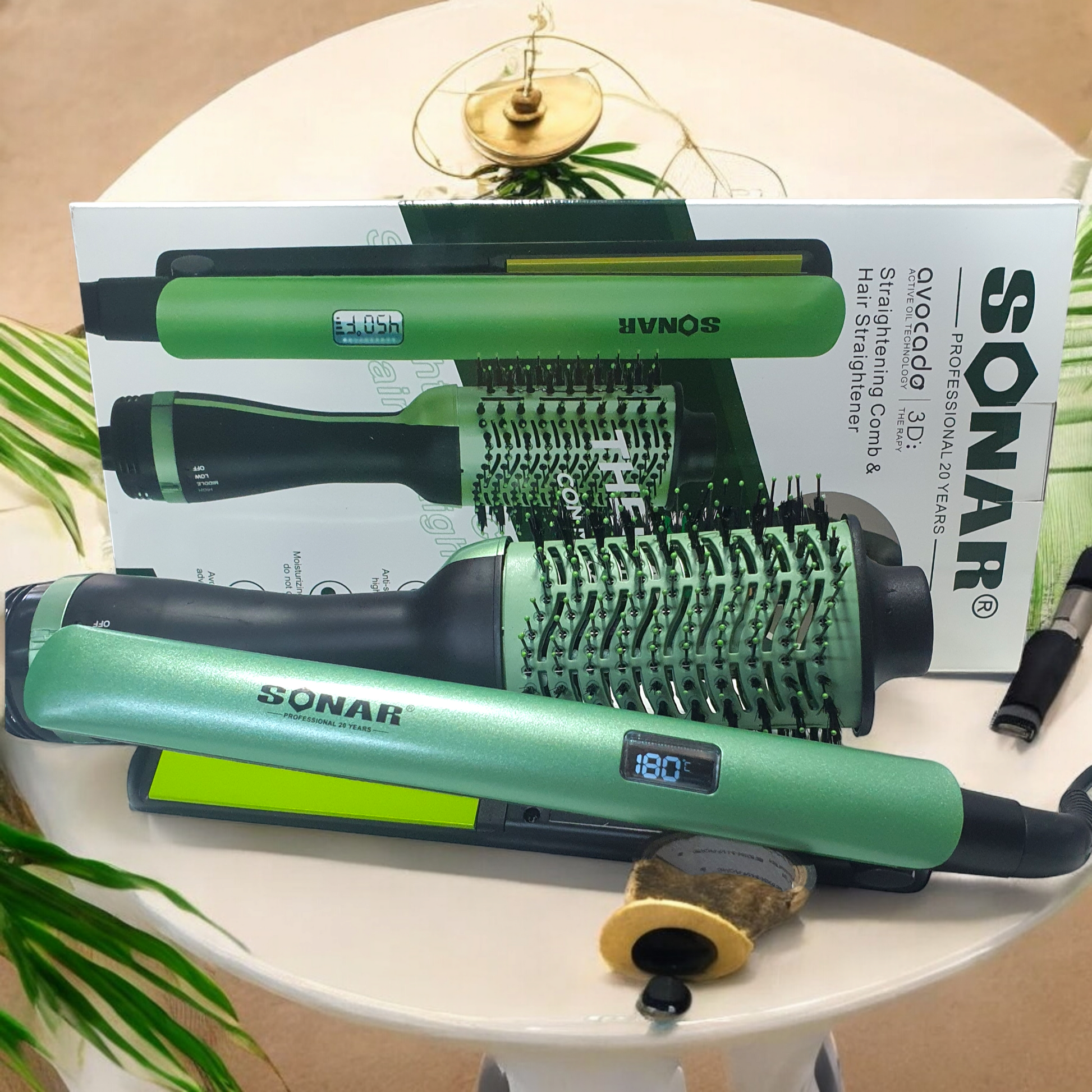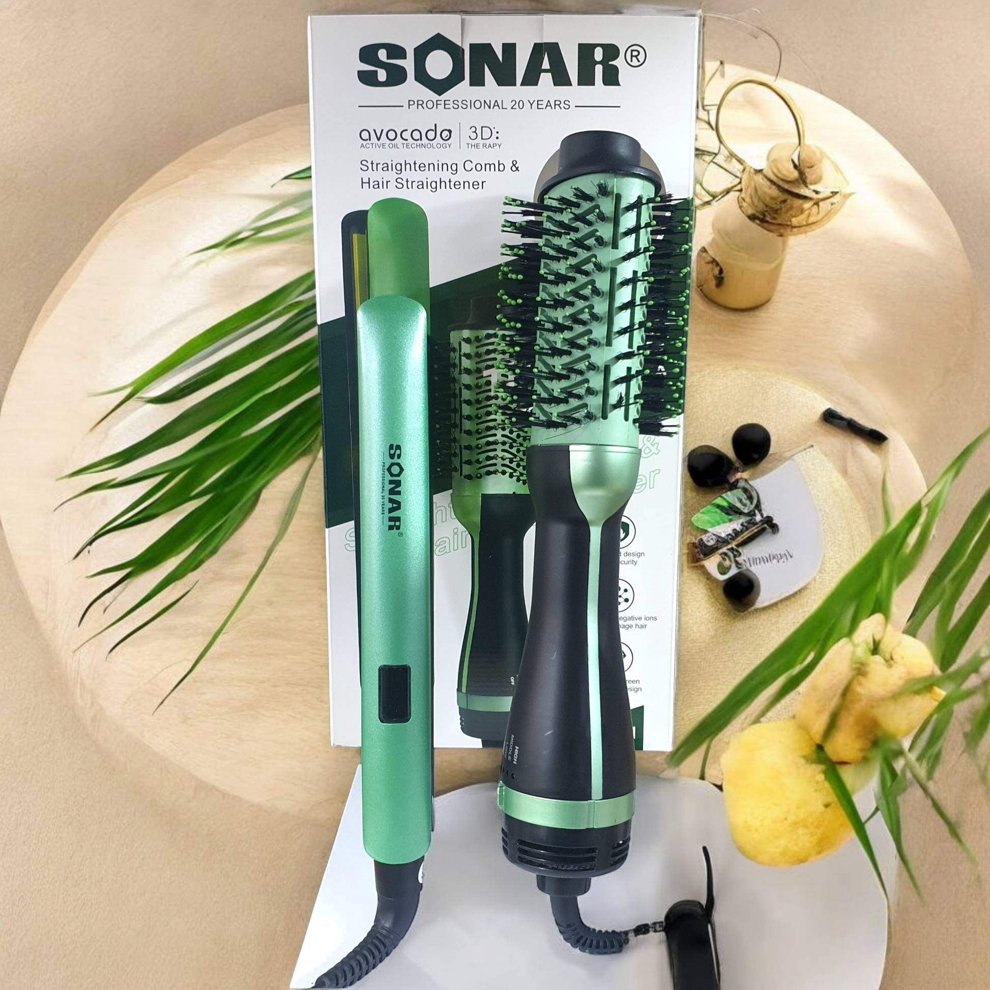 Luce ondas definidas, rizos perfectos o un alisado con volumen gracias al Combo 2 en 1 Plancha de Pelo y Peine Secador SN-001. Su tecnología iónica con aguacate y macadamia hidrata, da brillo y elimina el frizz, mientras su diseño ergonómico te permite peinar y estilizar de forma rápida y segura.